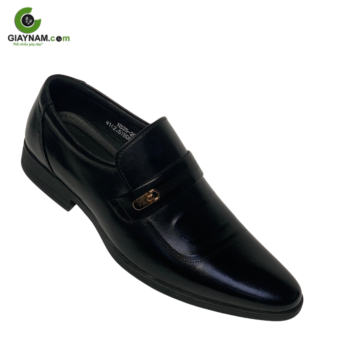 Phần mu thân giày được thiết kế với đai ngang tinh tế, điểm nhấn là khuy kim loại màu vàng đặt gọn gàng trên bề mặt, tạo cảm giác cao cấp và rất “Tây”. Chi tiết này giúp đôi giày trở nên nổi bật nhưng vẫn giữ được sự nhã nhặn cần có của một mẫu giày công sở.